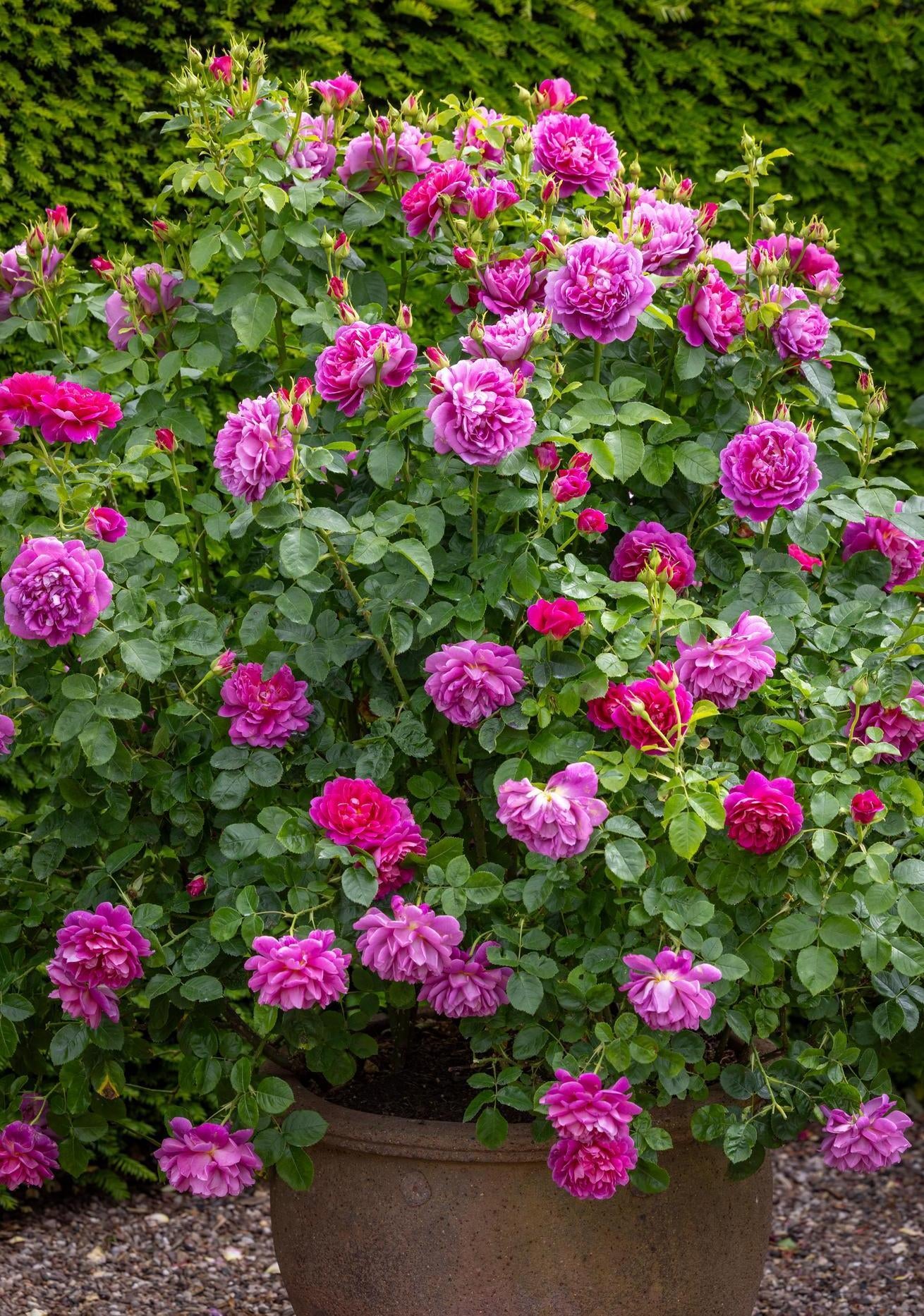 For shrub roses choose a container at least 45cm deep and wide to give your rose ample room to grow.