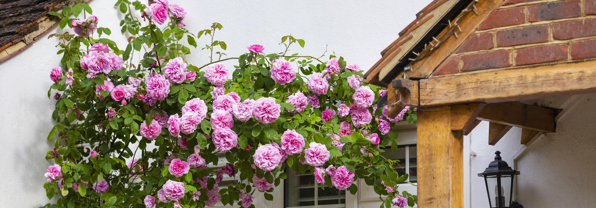Brighten up the front of your house with a magnificent climbing rose. A climbing rose can transform any home with its colourful blooms. A climber grown on the wall of your house will often be the earliest garden rose to flower due to the additional warmth the wall provides. Another benefit of growing a rose on the wall of your house, or on a wall or fence near to your house, is that the beauty and fragrance of the rose’s blooms can be enjoyed at close quarters