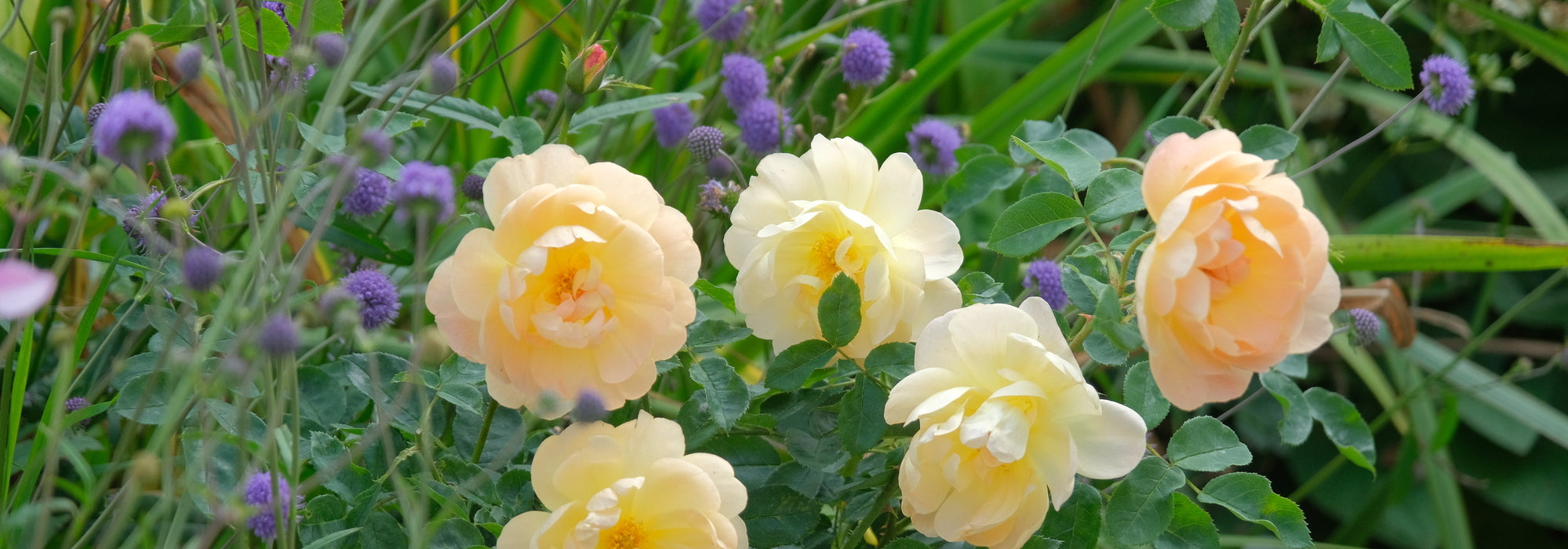Plants with purple or blue flowers, such as salvia and catmint, work especially well in mixed borders as there are not really any roses in this colour group. See our recommendations for Purple Partnering Plants.