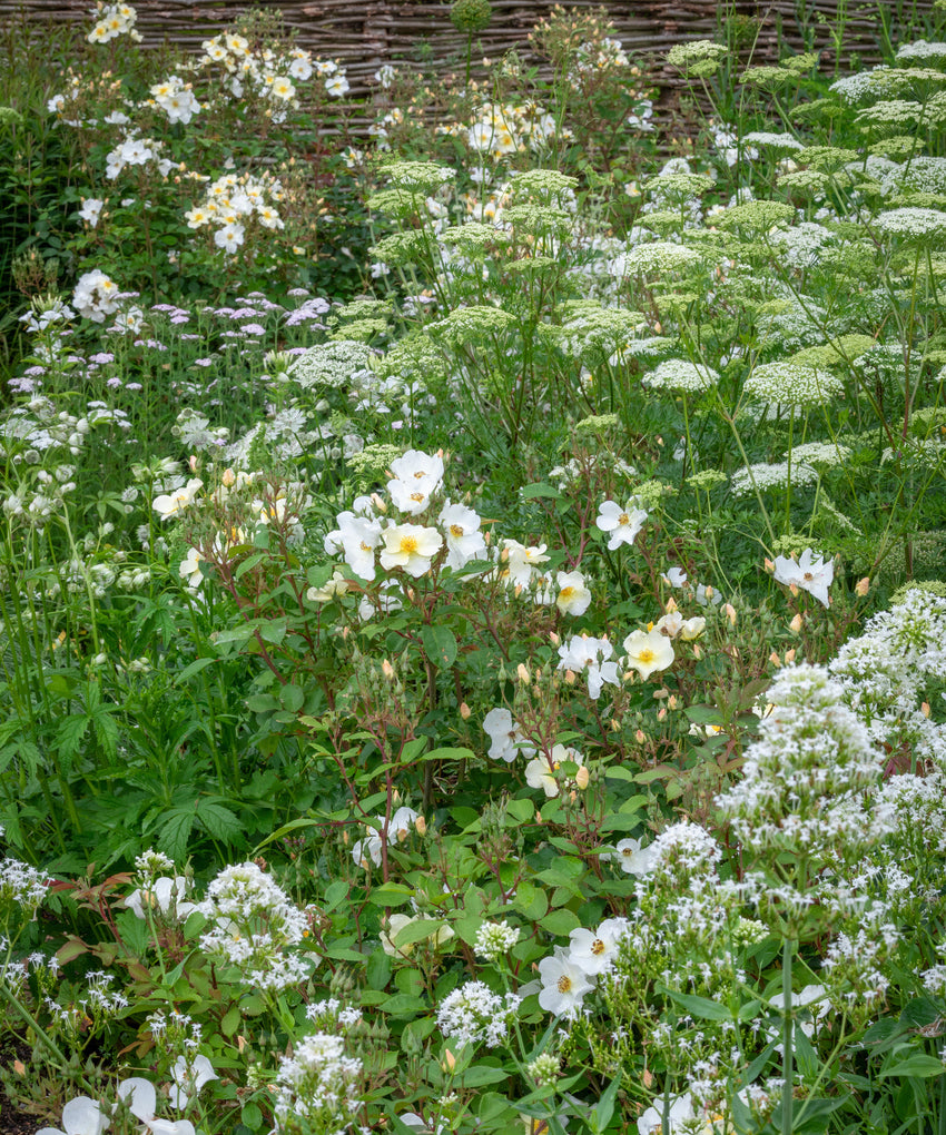 White roses are, of course, the heart of any moon garden. David Austin’s English roses are ideal for this purpose. Their soft, romantic blooms in shades of white and cream exude a gentle beauty that catches the light in a subtle yet captivating way. Varieties such as ‘Susan Williams-Ellis', with its pure white petals and delightful fragrance, and ‘Kew Gardens’, known for its unique form and slightly blushed tones, offer a range of textures and shapes that add interest and depth to the garden. These roses are not only visually enchanting but also fill the air with their sweet scent, creating a soothing atmosphere perfect for relaxing under the stars.
