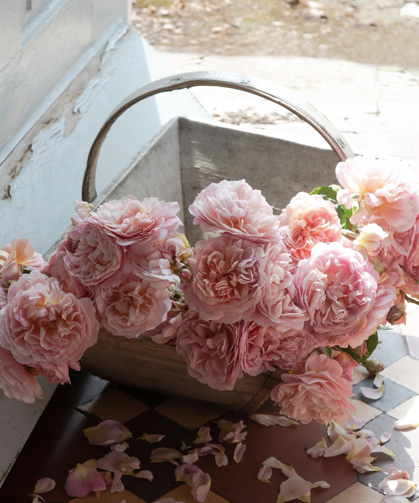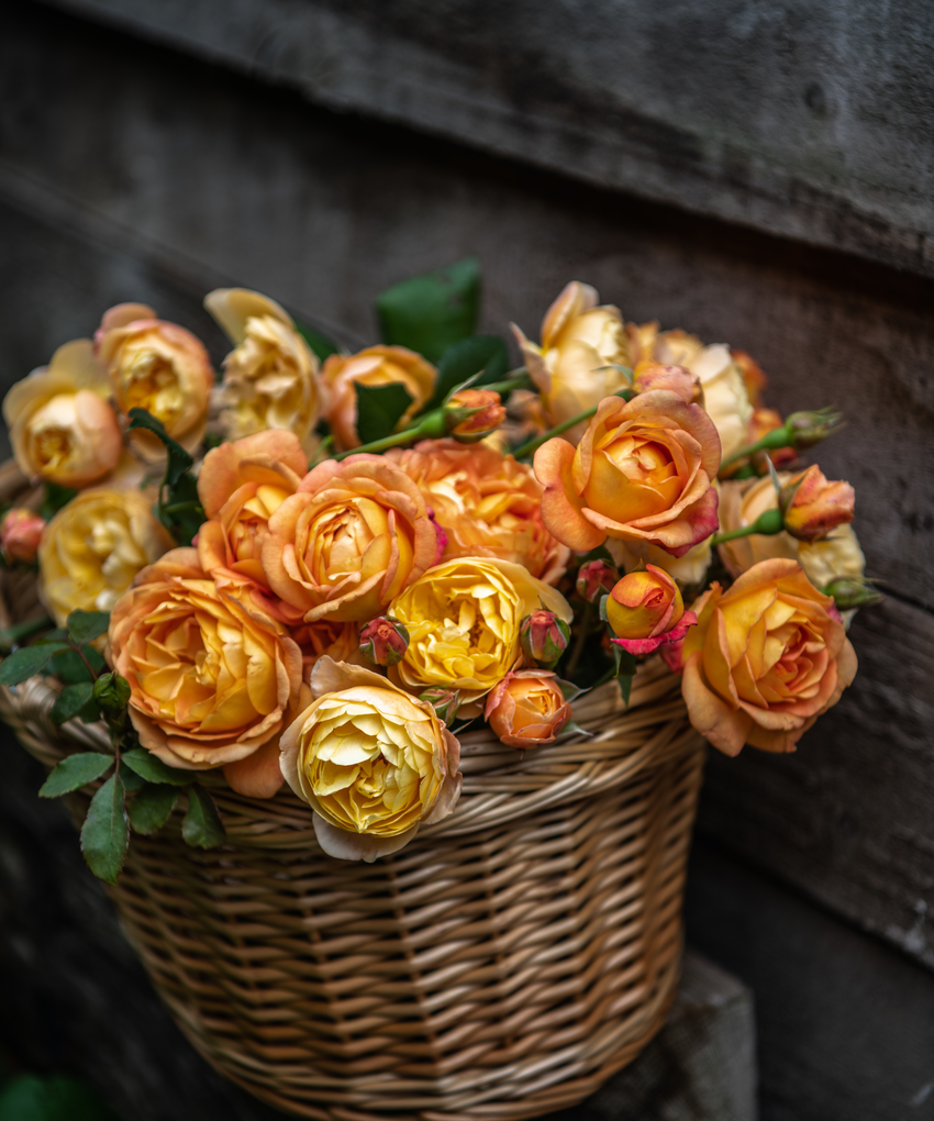 Ideally, cut roses in the morning, before the heat of the day and place in water. Gather gently in a trug or basket as you collect your blooms.