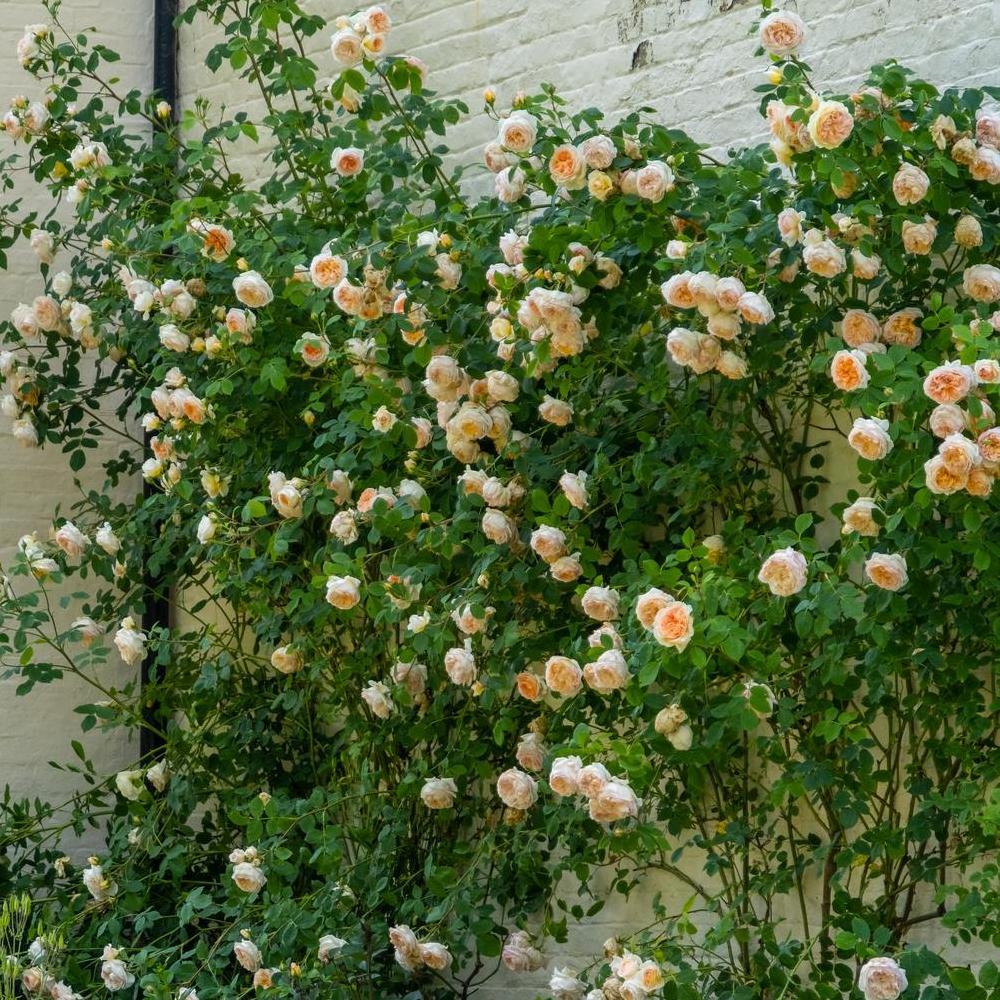 Bathsheba is a repeat-flowering climber, returning in steady waves from late spring into autumn. The growth is upright and well structured, producing stems naturally suited to training. With time, the plant develops height and presence while retaining a sense of restraint. At maturity, Bathsheba typically reaches around 10 to 12 feet (3 to 3.5 metres) in height depending on conditions and pruning.