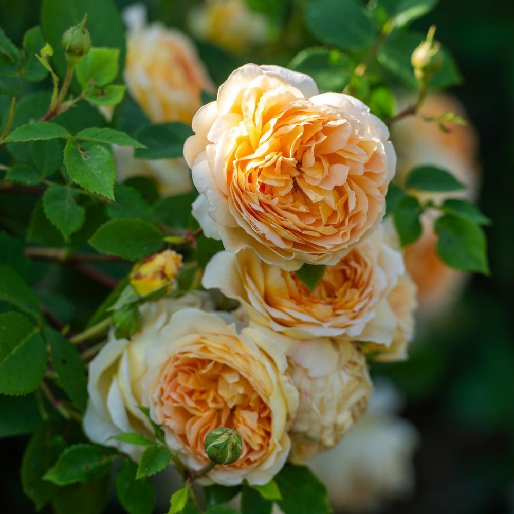 Chosen for the cover of the Handbook of Roses 2026, Bathsheba (Auschimbley) is a climbing rose distinguished by warmth, balance, and quiet refinement. The blooms appear in generous clusters, each flower a soft interplay of apricot and gentle yellow. Petals are arranged with relaxed elegance, creating a display that feels both abundant and composed. The fragrance is rich and characteristic, a classic myrrh scent with delicate notes of honey and tea.