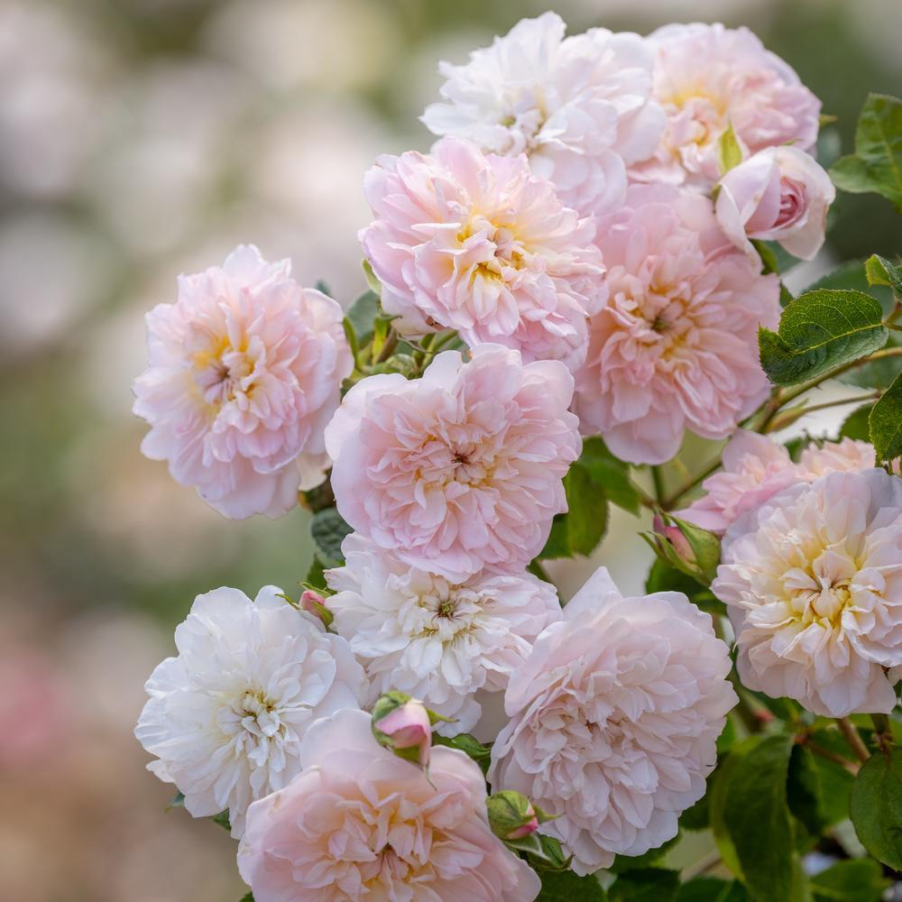 Graceful and full of quiet strength, Elizabeth is a rose with real presence. Its soft pink rosettes are touched with a delicate apricot hue that fades almost to white, glowing gently in early morning or late evening light. The fragrance is fresh and sweet, with subtle hints of lemon and old rose, inviting, but never overpowering.