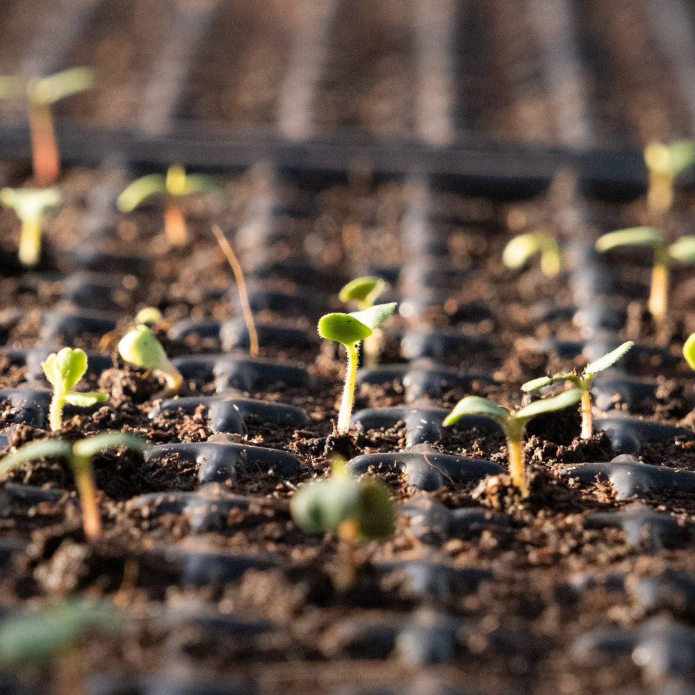 Winter brings a quiet pause as the rose hips are harvested and the seeds inside are cleaned, dried, and stored in cold storage. This mimics the natural winter chill that roses would experience in the wild. Then, come January, the seeds are sown into trays in our greenhouses and are carefully spaced, row after row, quietly waiting for the warmth of spring. Around 350,000 seeds are sown each year, each one unique and full of promise.