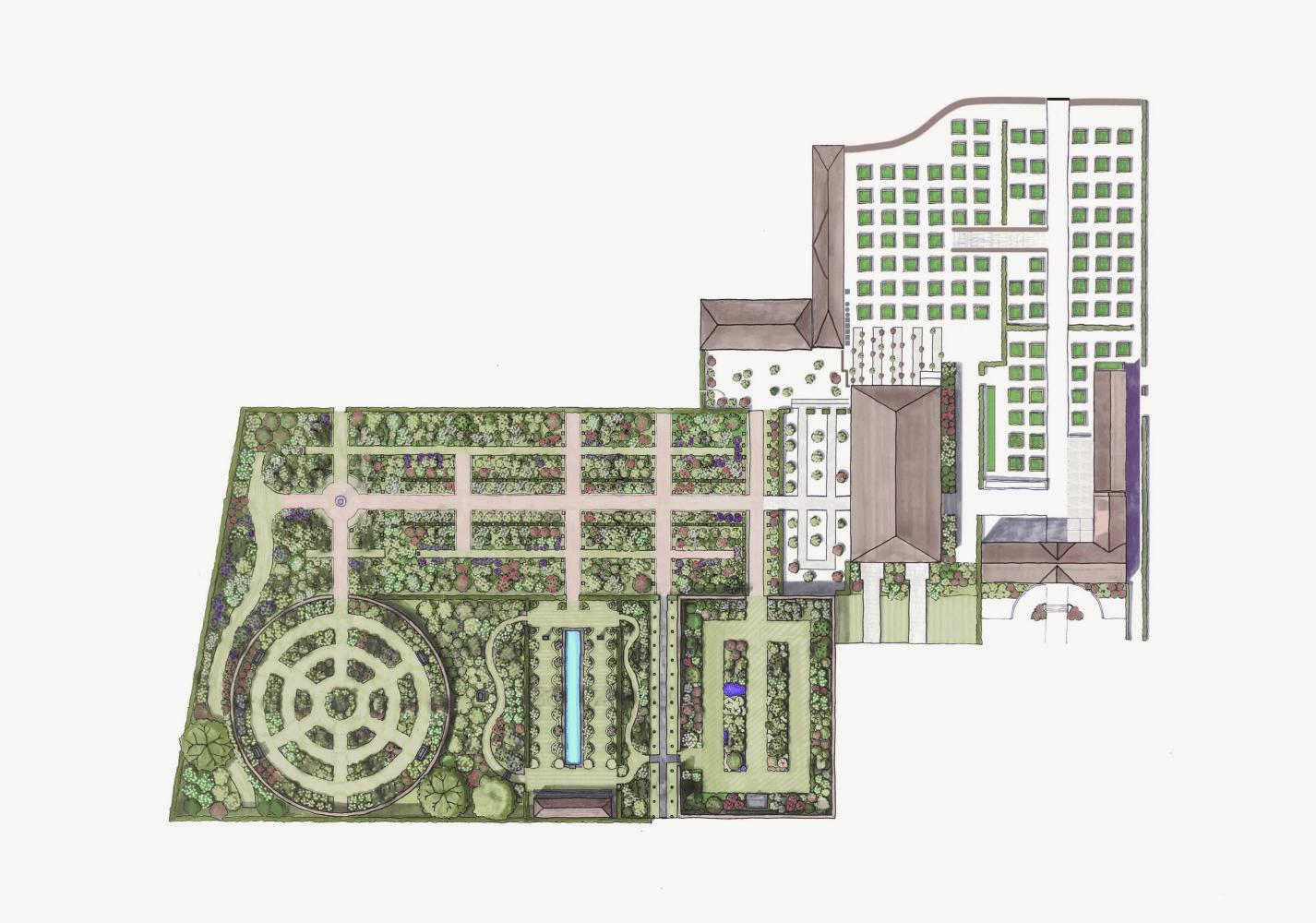 A mesmerising view of the David Austin Rose Gardens from the air. Fly over the 6 themed gardens and get a different perspective on their design and layout.
